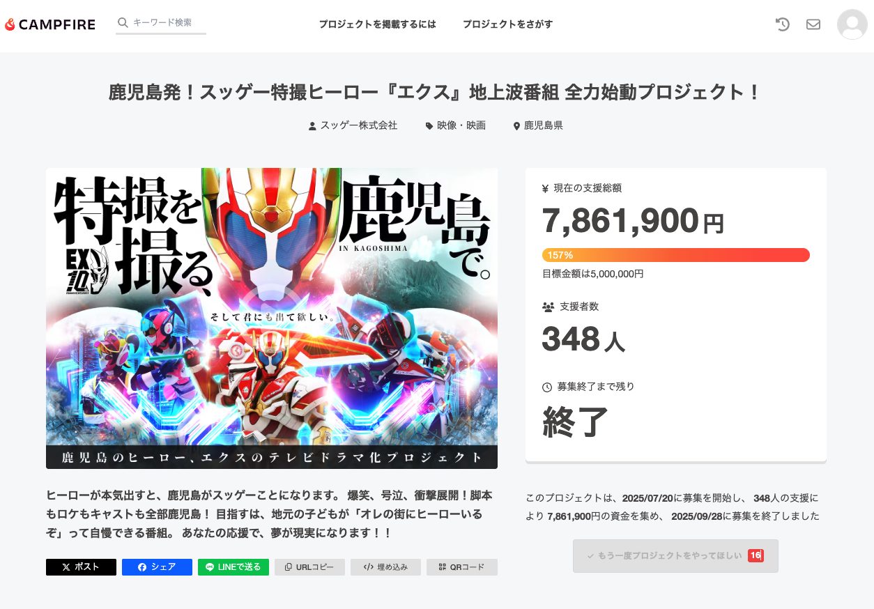 鹿児島発!スッゲー特撮ヒーロー『エクス』地上波番組 全力始動プロジェクト!
