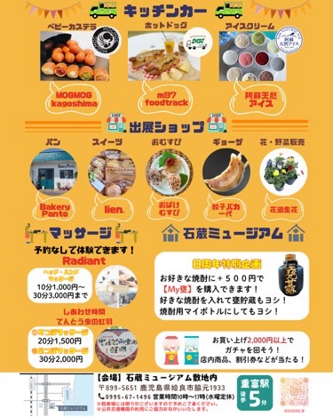 【出店情報】餃子バカ一代|石蔵ミュージアム周年祭 2025年10月4日(土) 2025.09.26 このたび、ECサイトでもご支援させていただいている 白金酒造様 の周年祭に、餃子バカ一代 として出店いたします🥟🔥 焼酎片手に、できたて焼き餃子を味わいに来てくださいね! 📅 日程:2025年10月4日(土)10:00〜16:00 📍 会場:石蔵ミュージアム 皆さまのご来場をお待ちしています! 🏮石蔵ミュージアム 周年祭🏮 10月4日(土曜日)は、石蔵ミュージアムの周年祭です!当日は大人からお子さままで楽しめるイベントが盛りだくさん♪ 🍶 新酒のご試飲🥃 第二回 利き焼酎大会🎁 空くじなしガチャ✨ ステンドグラス体験👧 キッズコーナー さらに、キッチンカーやマッサージ体験(ヘッドハンド/耳つぼ・足つぼ)、お花や野菜の販売もございます🌸🥬 ⭐️ 焼酎ブレンド体験(要事前予約・30名様限定)⭐️ MY甕(1800ml):石蔵ミュージアムで焼酎をご購入の方は、特別価格500円でお求めいただけます! Tweet Share Hatena Pocket RSS feedly Pin it この記事のタイトルとURLをコピーする 【出店情報】餃子バカ一代|長月桜祭り 2025年9月19日(金)〜21日(日) 前の記事 【熊本訪問】求人用インタビュー動画撮影|九州エリア対応 次の記事